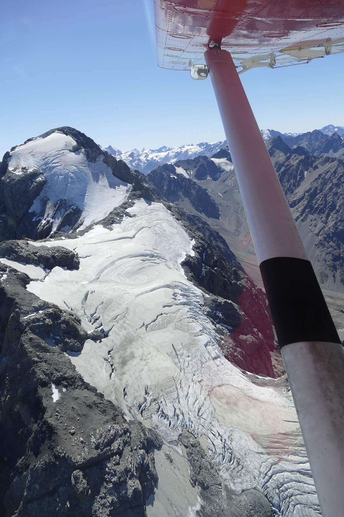 Hochstetter Dome and Mt Alymer - situated at the head of the Tasman Glacier these two peaks are our classic intermediate peaks with great views. These snow and ice peaks can be be climbed in winter or summer and both are done in the same day!!! Fantastic views of the Southern Alps and the Tasman Sea and the West Coast. Access is by either Skiplane or helicopter. Price on application.