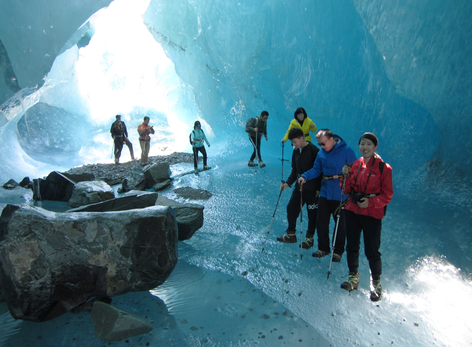 We start at 9:00AM. There are so many exciting features on the Tasman Glacier! The scenery of the Southern Alps will impress you beyond expectations. Weather permitting, ice walking time is about 2 hours. Please note that this is a natural and ever changing environment. New ice features evolve constantly, therefore, no guarantee can be given that specific features will be seen.
