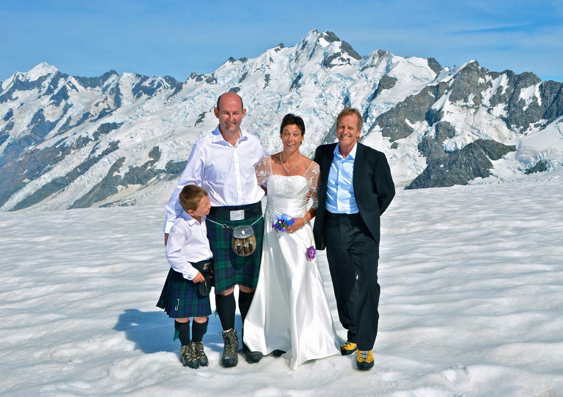 Let us know if you'd like to include a glacier heli hike, glacier or heli ski trip or glacier kayaking trip after your ceremony. We can organise a fun wedding day.